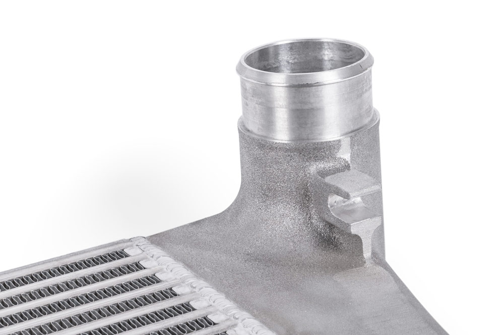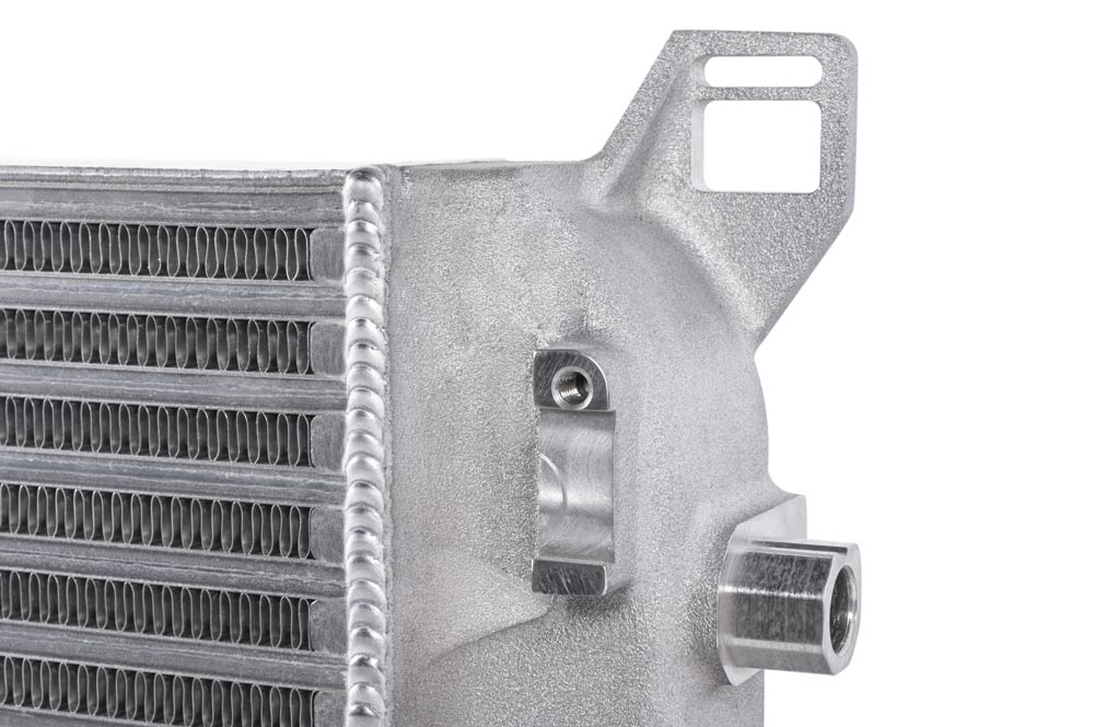 - Use of the OEM location allows for a massive intercooler core