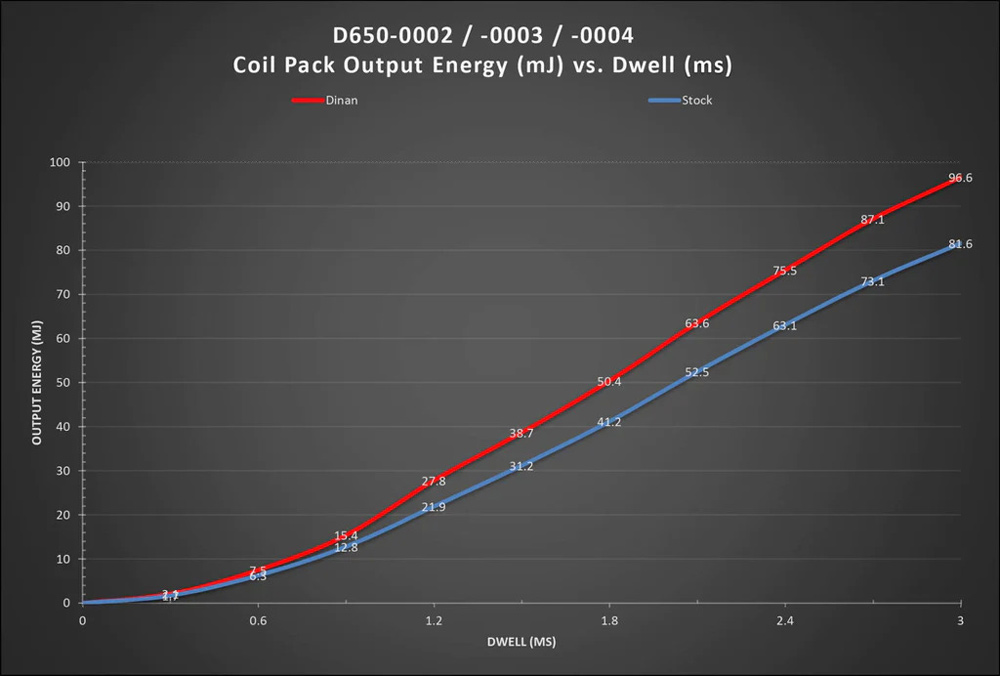 Dinan Ignition Coils are designed to be a direct plug-and-play replacement, or upgrade, to factory coils and provide greater energy output. With up to 10% more energy output than stock, you're ensured a stronger and more consistent spark. Whether you're replacing dilapidated coils that are causing sluggish acceleration and/or misfires or simply upgrading for a more reliable and consistent spark, your ignition system will be more efficient with a new set of Dinan coils.